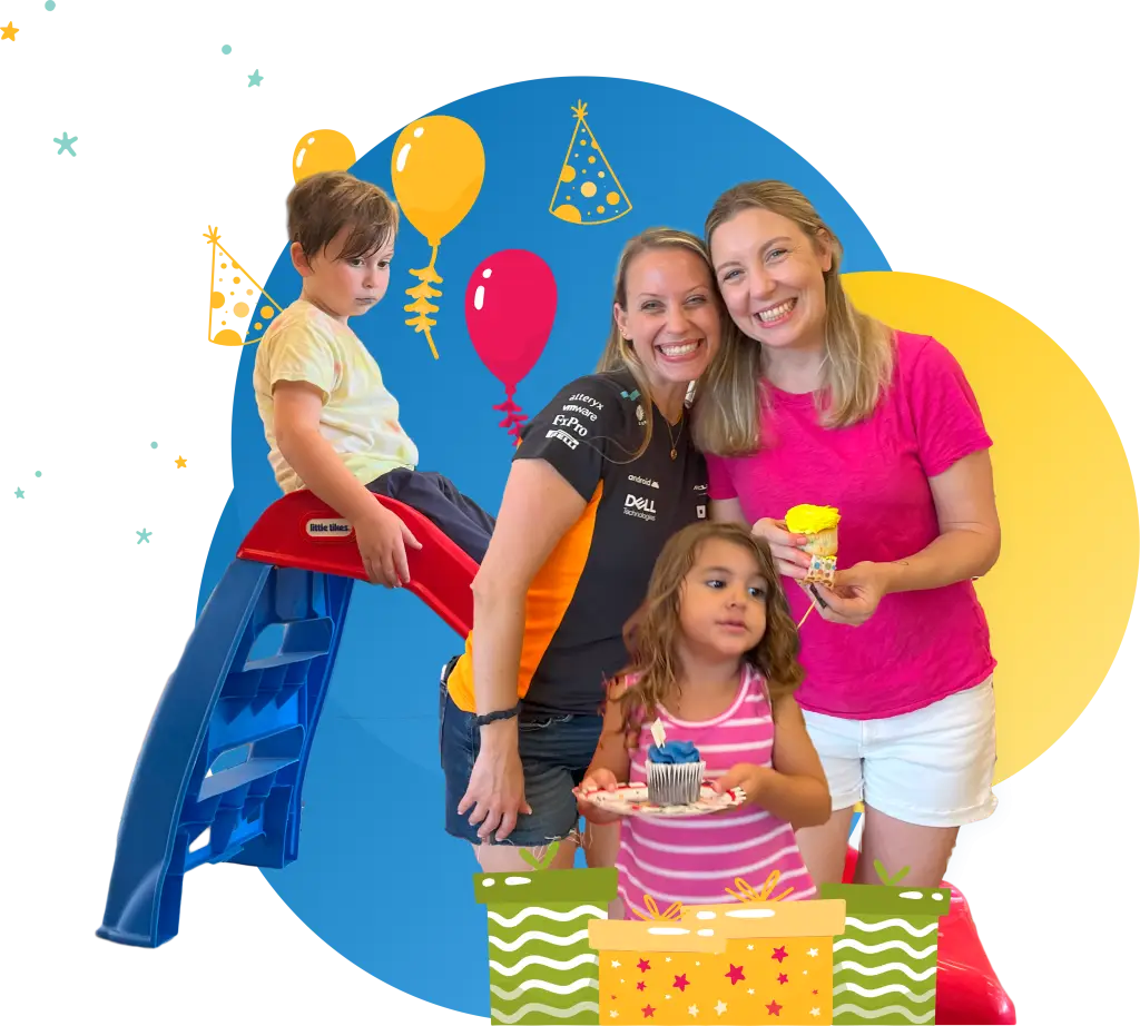 Tons of stuff to do including books, games, bounce houses, slides and rockers.