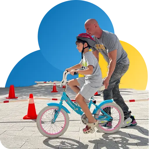 PedalYard® teaches everyone to ride a bike for the first time. From age 3 to adult. Either at an event or in a one-on-one private setting. It’s Safe, Fun, And Fast. Usually takes a single session.